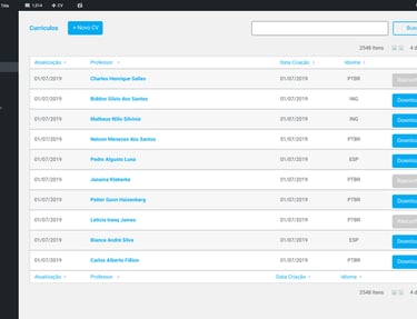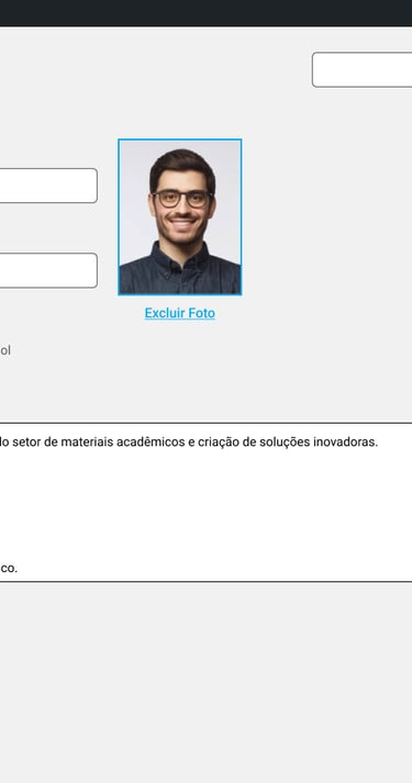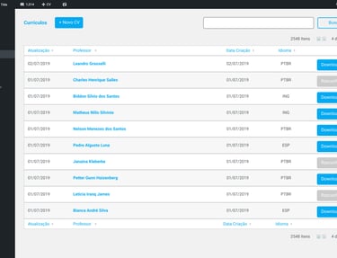 Cada professor podia inserir e editar seu próprio currículo diretamente na plataforma.